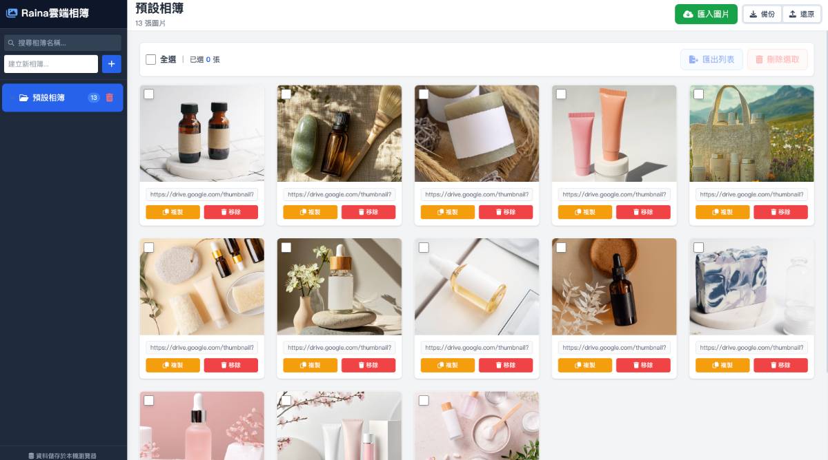 只要加入一個class就能自動辨識底下是否連結圖片、雲端圖片連結。是否有過套用其他的燈箱外掛經驗,往往要配合大量的結構書寫,只要在指定的div區域加上「.raina-lightboximg」就能自動往子元素辨識誰連結的是圖片,順利啟動燈箱效果。