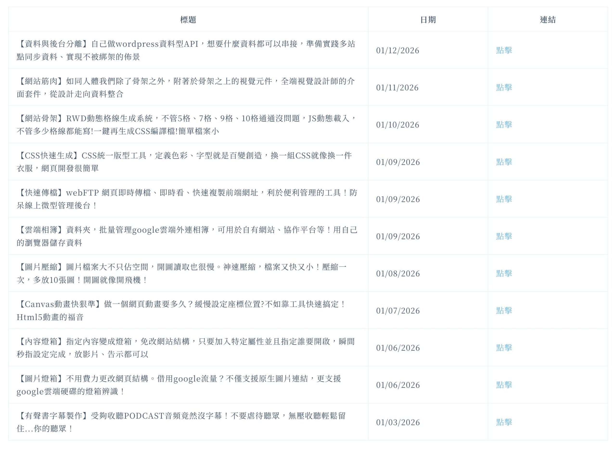 ⭐️ 以上是不是很簡單!又能自訂資料產出格式。每當我安裝外掛自動生成json的api我都暈眩,我不知道怎麼用,也不按照我的JS外掛結構,我要配合這全部都產出來的結構,沒有自訂範圍與結構!